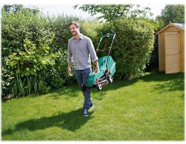 Effortlessly mow your lawn with the Bosch Rotak 36 R Corded Rotary Lawn Mower, boasting a 1350 W Powerdrive motor. Delivering a neat cut, regardless of grass length or uneven ground conditions, with the 36 cm sharpened steel blade.And at just 12 kg, the lawnmower is light enough to easily carry and manoeuvre around your garden, including around flower beds and paths. The foldable handles also make storage simple when you’ve finished, so you don’t need to worry about finding enough space. With a large 40 litre grass box you won’t have to spend time repeatedly emptying out your cuttings, and the box has a carry handle for your convenience.