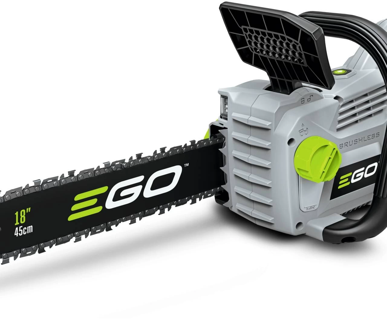 The EGO Power+ 45cm cordless chain saw has an industry-leading chain speed of 20 m/s, which provides all the power and torque you need to quickly cut through thick branches and larger logs up to 45cm (17.5ins) in width.