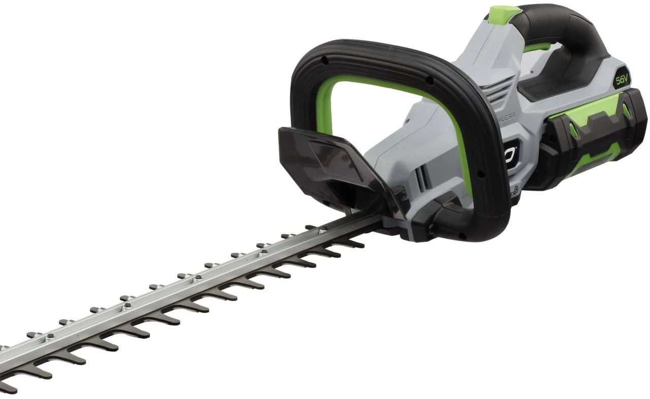 Tackle unruly bushes with the EGO Power+ battery powered hedge trimmer. With a blade length of 61cm, you will have ample reach to make light work of your task in hand. The blades are laser cut; diamond ground to allow effective trimming, and feature a dual action single-sided blade.