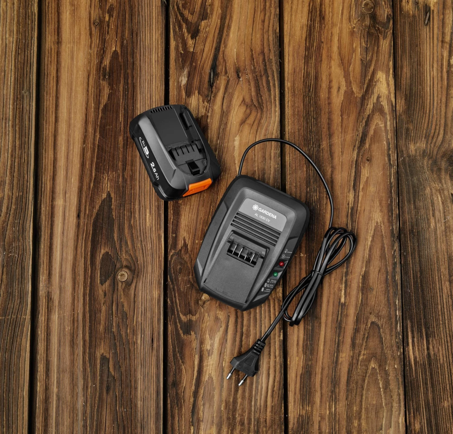 This Starter-Set consists of the GARDENA Quick charger AL 1830 CV and the 2.5Ah POWER FOR ALL battery. The battery is fully charged within 60 minutes. The LED display on the charger indicates the charging status. You need your device to be ready for action as soon as possible: charge it up to 80% until the ‘Ready to go’-LED is on. For the 2.5Ah battery charging up to 80% only takes 40 minutes. This Starter-Set fits perfect for all handheld garden tools. It is a product of the POWER FOR ALL Alliance, one of the largest cross-brand battery alliances of leading manufacturers. The set can be used in all 18V POWER FOR ALL products. This means you buy this Starter-Set with one charger and one battery for all your products. You save money and stay flexible all the times! Passion powered by GARDENA – Battery garden equipment that gives you the freedom to create.