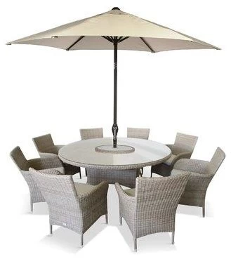 The timeless design of the Monaco 8 Seater Dining Set in Sand is stunning with its natural colour tones.