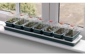 While windowsills can often provide ideal light conditions for successful propagation, they can also be cool and draughty; this compact electric propagator is a complete nursery for the windowsill. Featuring 7 mini vented propagators. Ideally sized for most gardeners. Allows the growth of a large array of plant varieties on just one unit. Contains a 13W carbon fibre element for even heat distribution.
