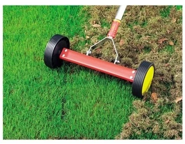 This Roller Moss Removal Rake is the ideal tool for clearing moss and thatch from your lawn. The head has been specially designed to swing back and forth. This, combined with the angle of the teeth, enables the rake to glide over the lawn when pushed and bite into the lawn when pulled. The wheels on either side of the rake provide maximum manoeuvrability with minimal effort.